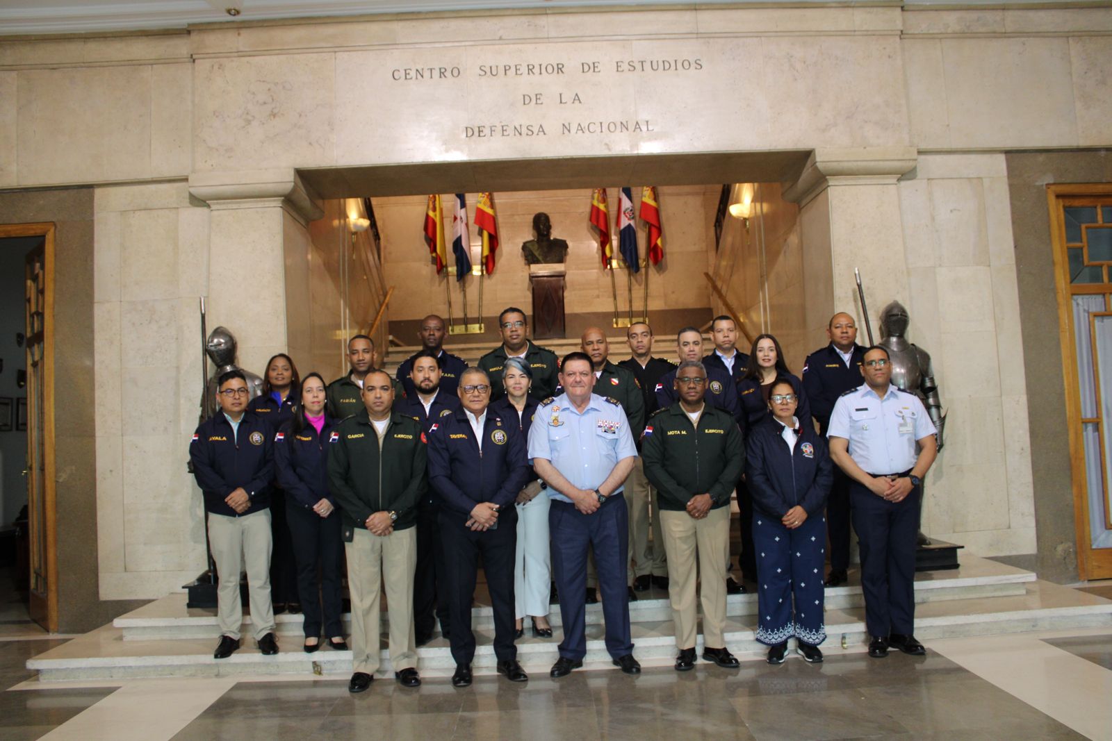 Madrid, España – Como parte de su programa de formación, la Escuela de Graduados de Altos Estudios Estratégicos (EGAEE) de la Universidad Nacional para la Defensa (UNADE), del Ministerio de Defensa de la República Dominicana, realizó una visita oficial al Centro Superior de Estudios de la Defensa Nacional (CESEDEN), en el Reino de España.